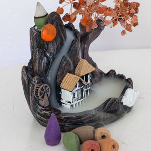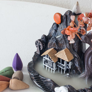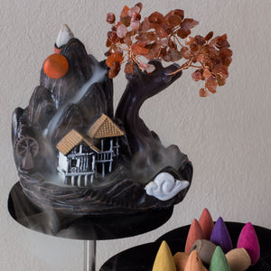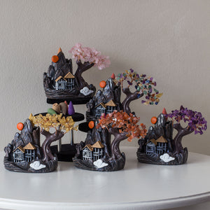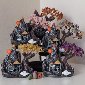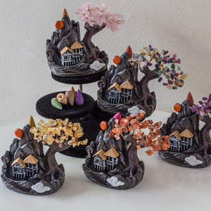 These exquisite backflow burners are designed to do more than just fill your space with delightful fragrances. In addition to their aroma diffusion capabilities, they also feature small crystal chips that add to their beauty and imbue them with the energetic power of crystals. The burners are adorned with a tree of life made from various crystal chips that further enhance their stunning appearance and energy. The intricate details and careful craftsmanship of these burners make them a unique and captivating addition to any space.