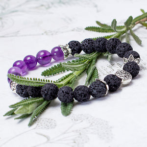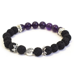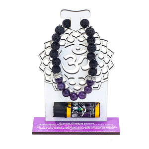 You can balance this Chakra with purple amethyst gemstone crystals gemstone crystals and its unique essential oil blend which you place on the Lava beads.