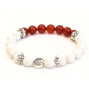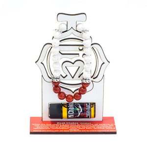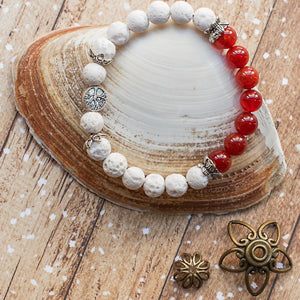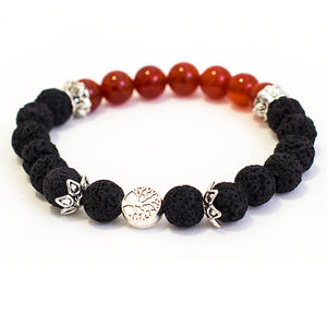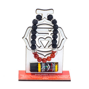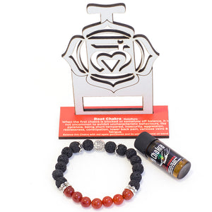 You can balance this Chakra with red agate gemstone crystals and its unique essential oil blend which you place on the Lava beads.