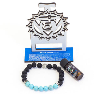 You can balance this Chakra with turquoise gemstone crystals and its unique essential oil blend which you place on the Lava Beads.