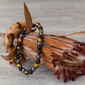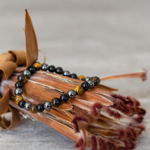 3 of the most powerful crystals combined to create perfection. The Triple Protection Bracelet is one of our most sought after bracelets, boasting some of the most incredible gems around. Tiger’s eye, black Obsidian and Hematite is the powerhouse of beads when combined into one.