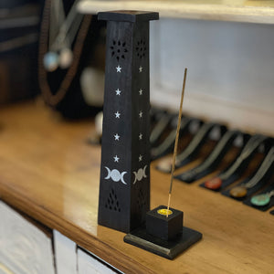 A multipurpose Stylish wooden holder to place an incense cone or Stick into. Simply remove the gold plate to insert an incense stick in the middle or place an incense cone on the plate in the center. Watch as the smoke escapes through the holes of this Stunning Tower Holder.